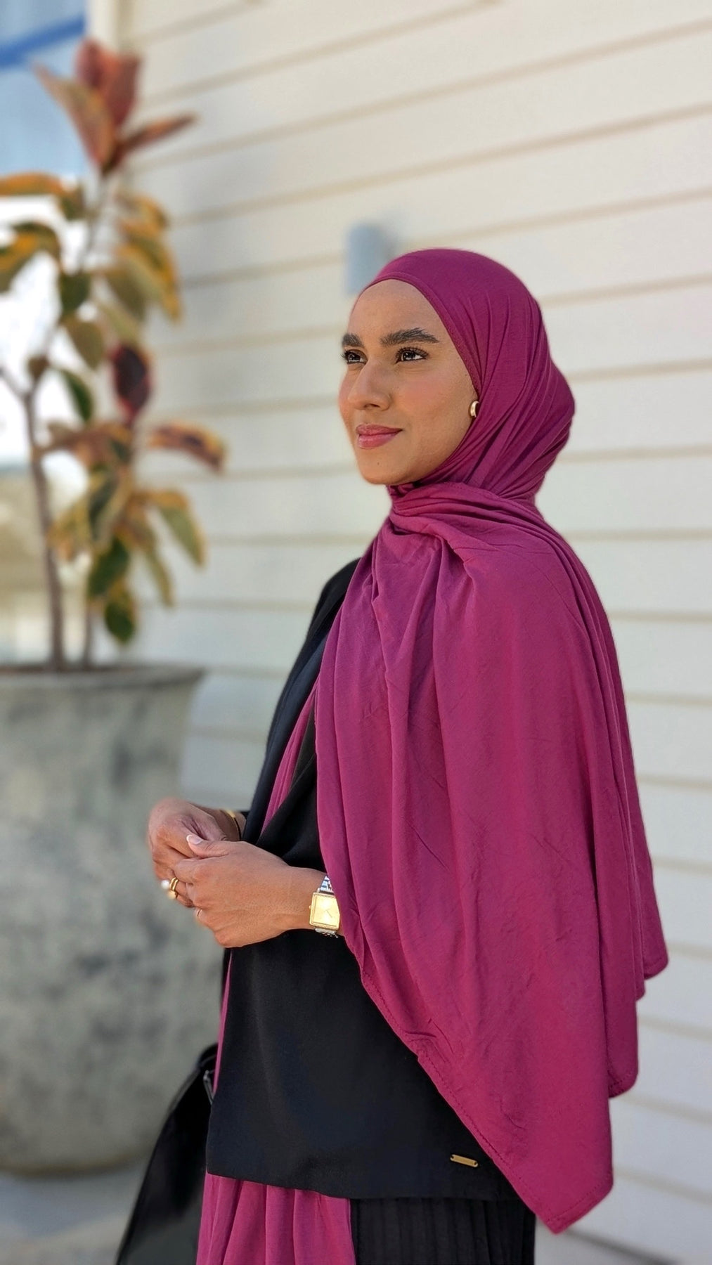 Jersey Hijabs are loved for their soft, stretchy fabric that drapes beautifully and stays in place without pins. Made from breathable, lightweight jersey material, they provide all-day comfort and a sleek, polished look. With their natural stretch, these hijabs are easy to style, perfect for both casual wear and busy on-the-go days. They’re ideal for anyone who wants a fuss-free hijab that balances comfort and elegance.